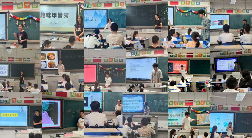 团队分两期开展活动。每期课程开课前,带队老师都会指导队员对课程设计进行打磨,力求呈现最优质的课堂效果。第一期团队由经验丰富的22级学生组成,扎实运用师范生专业技能,有效激发了学生的学习热情,让课堂充满活力。同时,队员深挖当地红色资源与民族特色,有机融入民族团结教育、扫黄打非宣传、宋韵文化传承等内容,引导孩子们筑牢思想根基,厚植家国情怀。