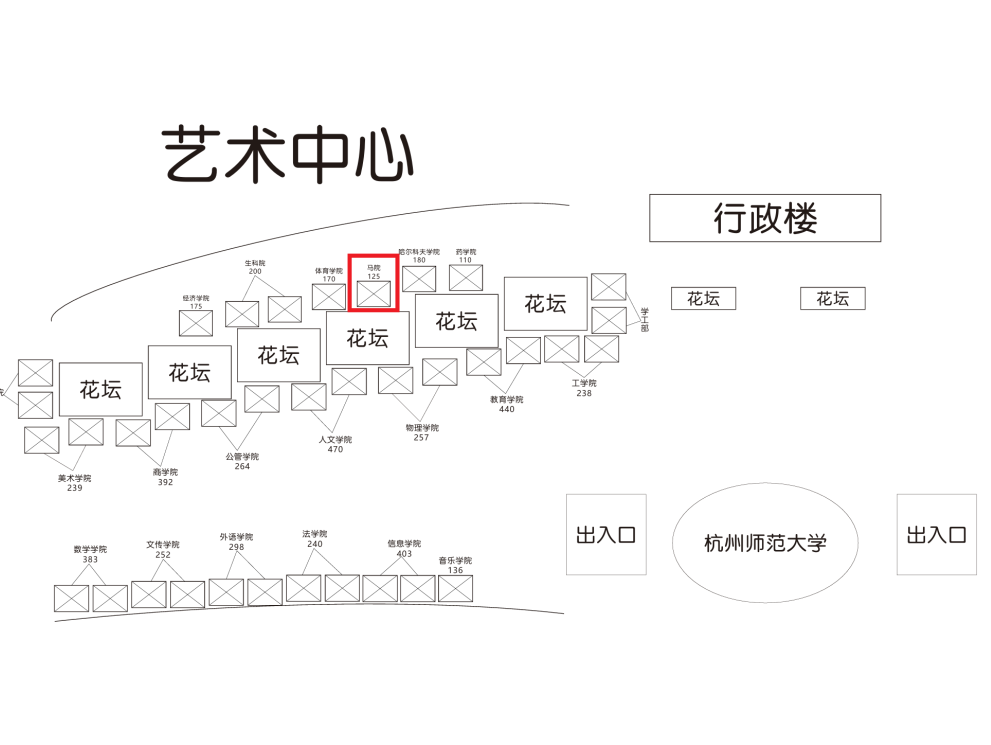 杭州师范大学下沙校区行政楼西南侧(经亨颐像前),以下是学校地图&各学院报到地点位置图。