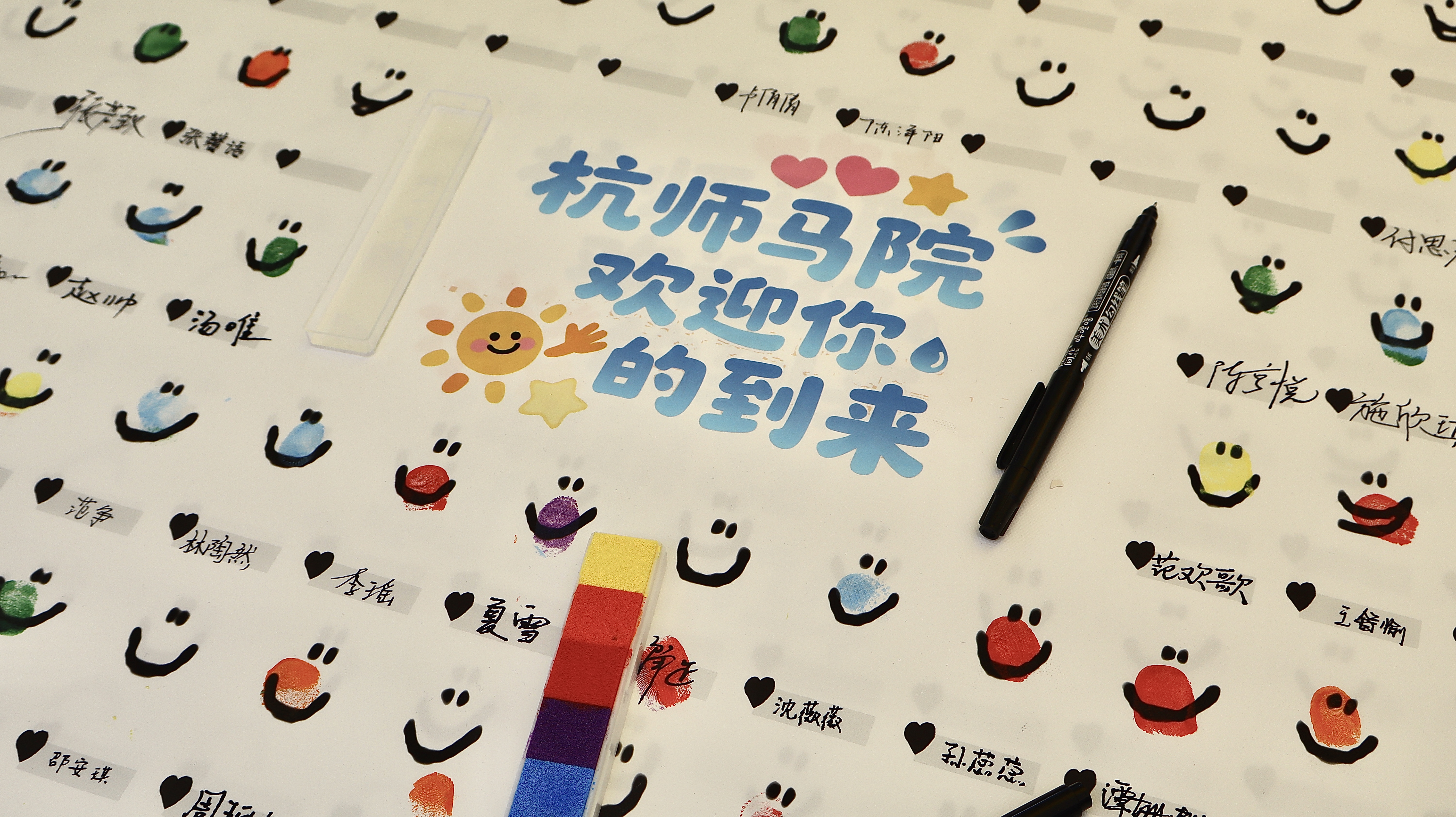 新同学陆续在笑脸签到纸上签名涂色,为这段崭新的旅程写下温暖开篇。报到区还特别设置了创意合影框、背景板,新生们在这里留下与马院的第一张合影,定格人生的重要时刻。