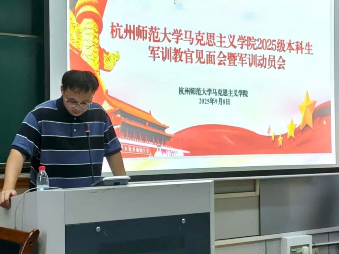 9月8日下午,杭州师范大学马克思主义学院2025级本科生军训教官见面会暨军训动员大会顺利召开。学院辅导员包肇正老师、一团五营一连教官们及2025级全体参训同学参与了本次动员大会。本次会议由包肇正老师主持。