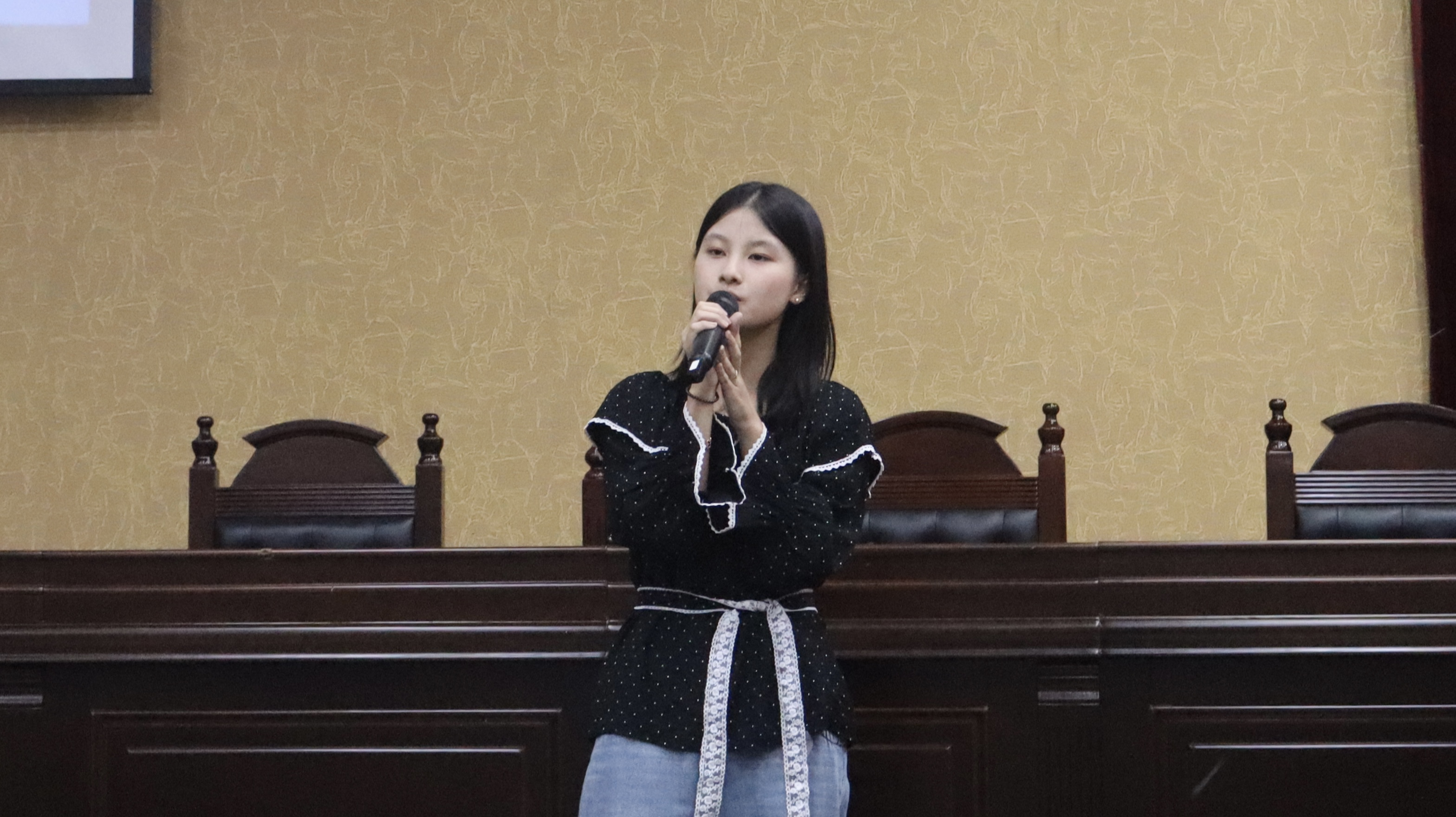 (图为思政241班洪彧儿、思政242班厉肖妃合唱《红蔷薇白玫瑰》)