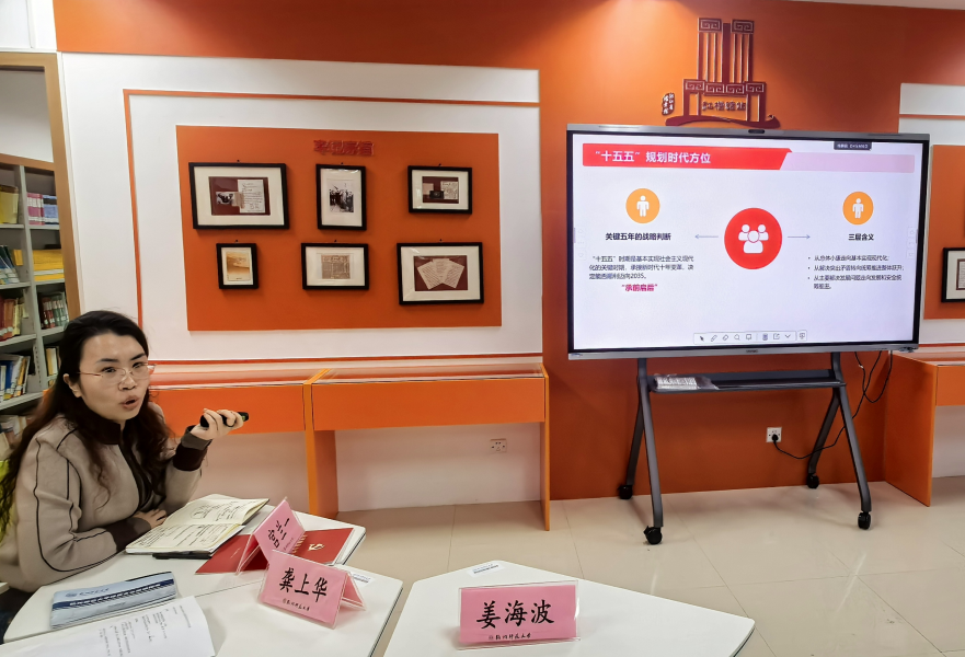 战略对标谋新局,实干担当践使命。活动最后,双方共同聚焦党的二十届四中全会精神开展党课专题学习。马院教工第六党支部书记宫兰一老师领学十五五规划中的内容,重点领会教育科技人才一体发展、高校提质扩容等战略部署。双方依托各自业务方向,从财务保障和思政铸魂育人等方面融合党的二十届四中全会精神,切实把握未来工作方向。